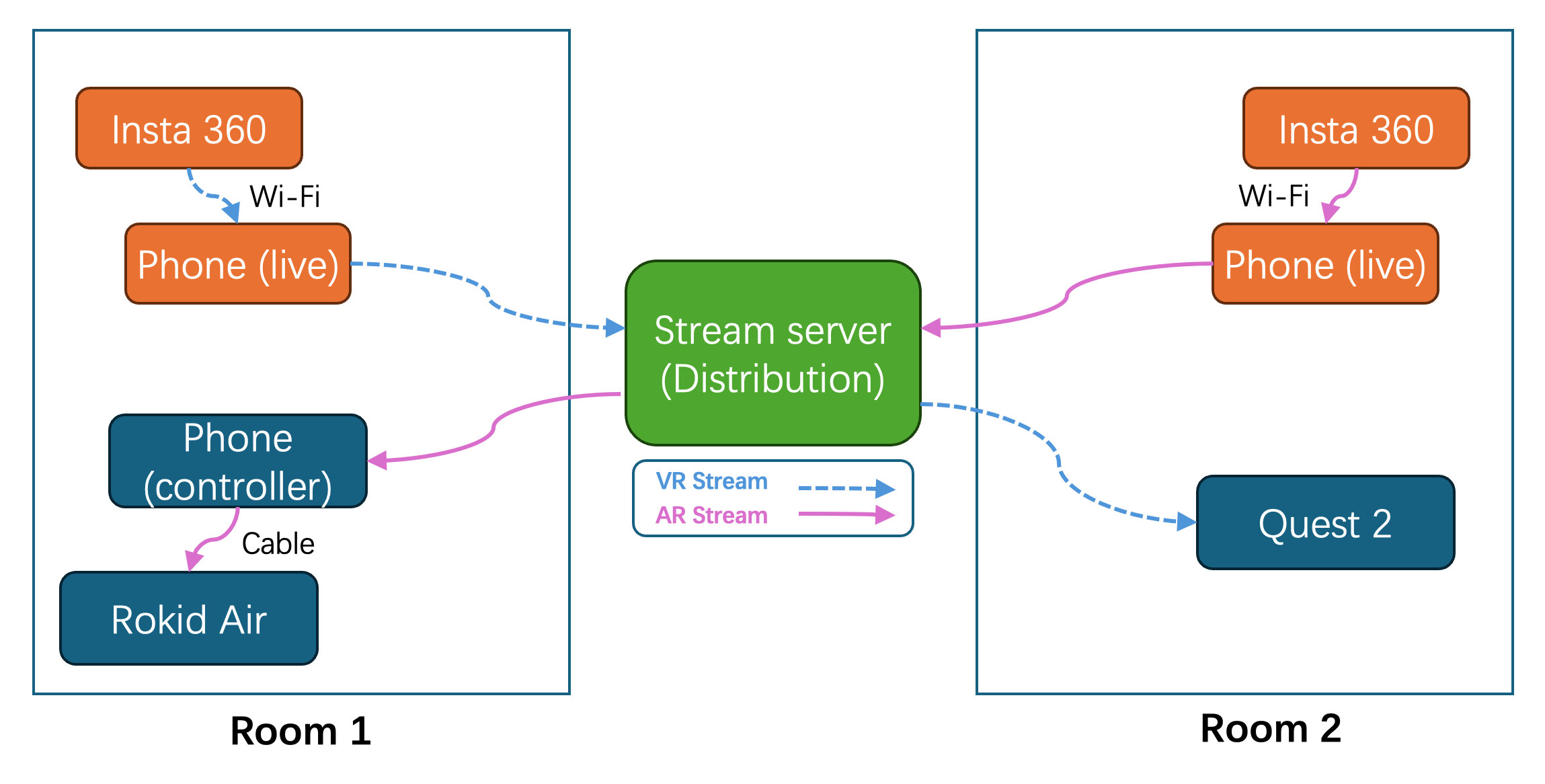 This is my M.Eng. master project. I built an AR panoramic video calling system that enhances an “immersive calling” experience: users can wear Rokid Air AR glasses and look around a remote environment in 360°, as if stepping into the other person’s room. 🤩