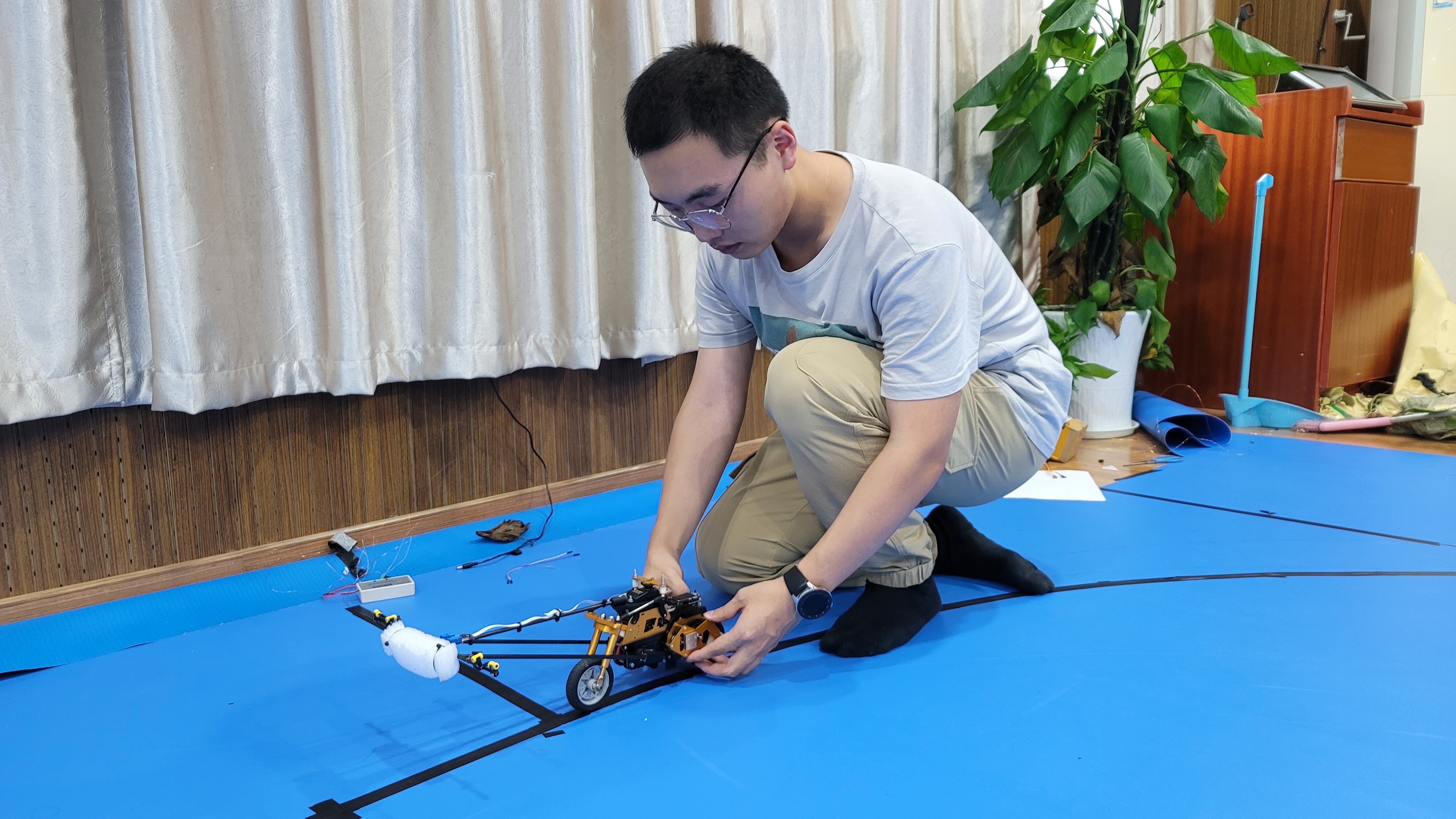 Participating again for the second year, we developed a self-balancing electric motorcycle that autonomously follows an electromagnetic track using self-designed magnetic sensors. Without the aid of a flywheel, the vehicle maintains stability through precise real-time control algorithms.